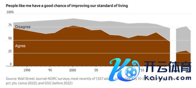 《华尔街 · 日报》的一份最新民调流露,近 70% 的好意思国东说念主认为"发愤责任就能致富"的好意思国梦还是不再开发。认为我方有契机提高生流水平的东说念主,比例跌至 1987 年有记录以来的最低点——戋戋 25% 。