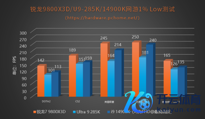 从测试成果的图表上就不出丑出,锐龙7 9800X3D获取了全面的率先,平均游戏帧率均彰着向上酷睿Ultra 9 285K和i9 14900K,《DOTA2》中锐龙7 9800X3D比Ultra 9 285K足足向上58%,《能人定约》中率先44%,《丧胆公约》中向上137帧率先约34%。与i9 14900K比拟,5款游戏中锐龙7 9800X3D的平均帧率也向上20%以上,赢得毫无压力。