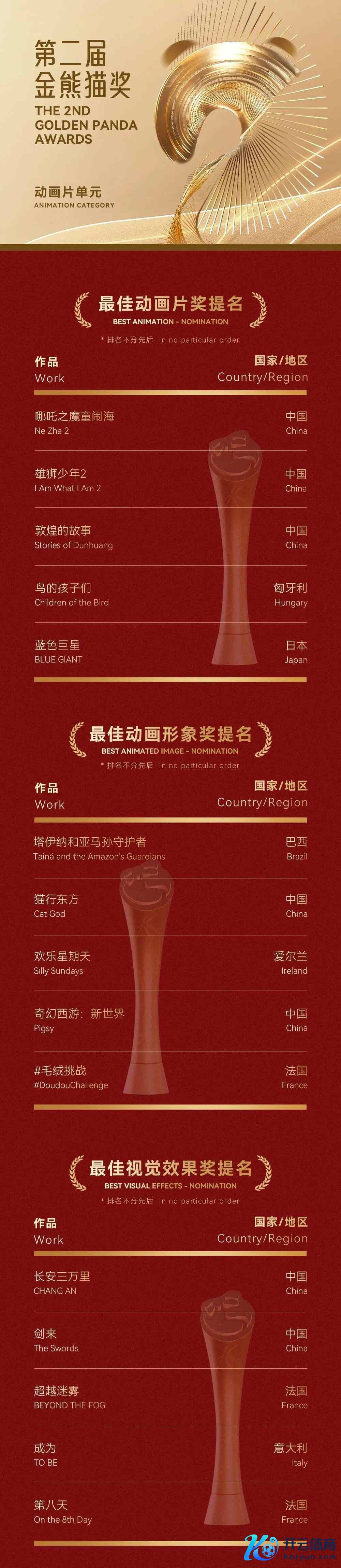 第二届金熊猫奖动画片单位设有最好动画片、最好动画形象、最好视觉后果三大奖项。