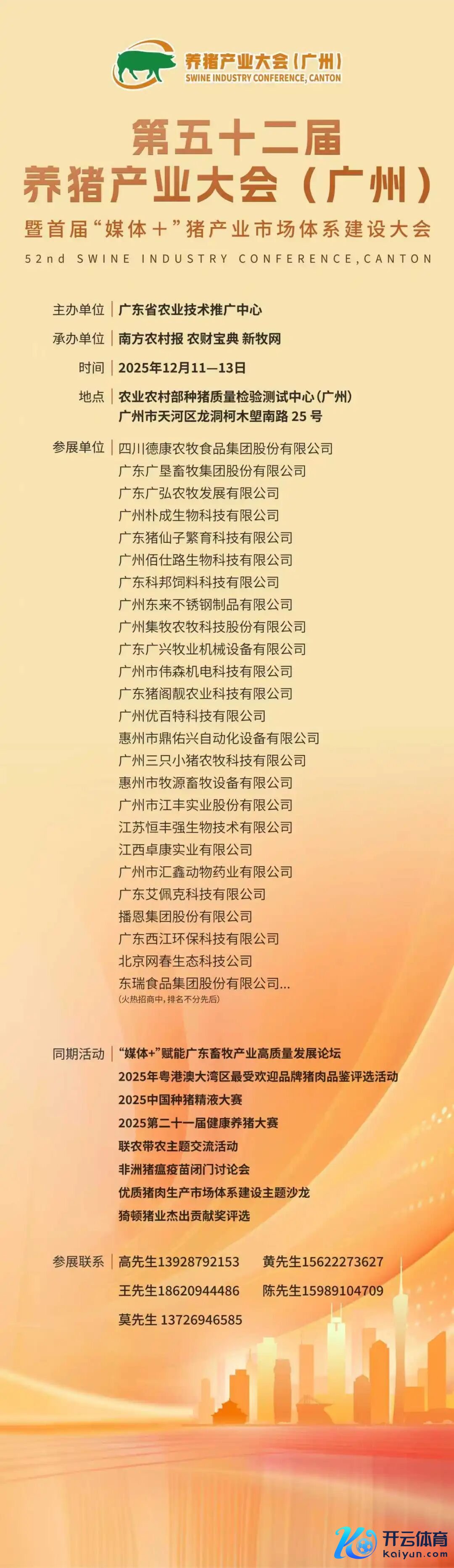 2025年12月11-13日,第五十二届养猪产业大会(广州)将于广州柯木塱农业农村部种猪质料磨砺测试中心恢弘召开。