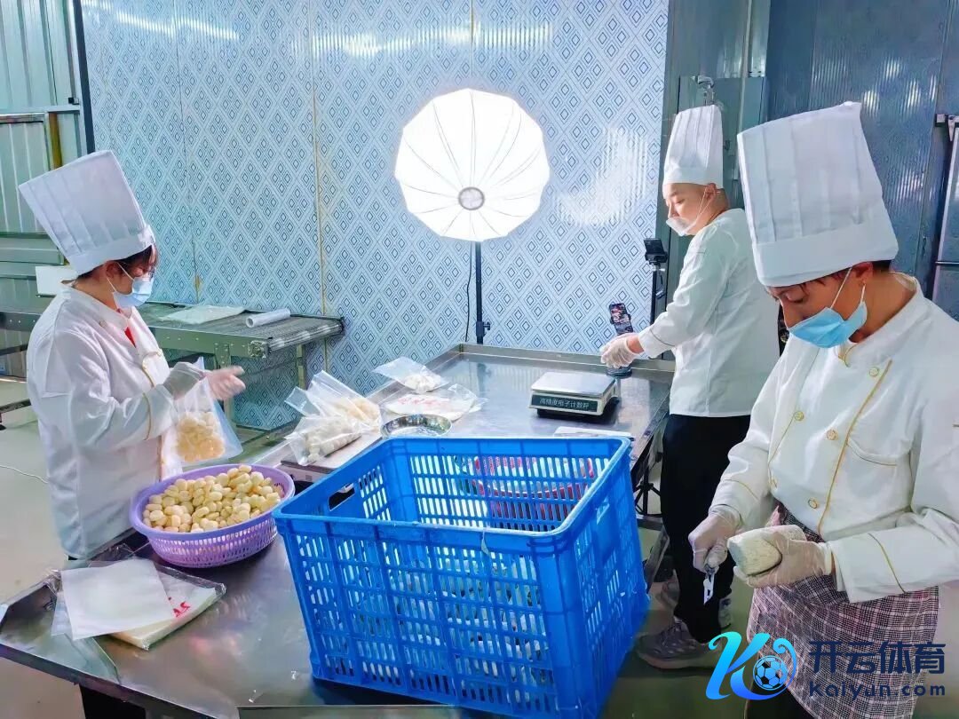 北州里黄坌村马蹄加工车间内使命主说念主员在直播带货。图源韶关发布